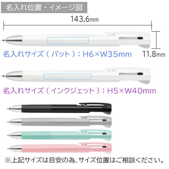 ブレンの筆記振動”を制御する「ブレンシステム」を搭載したボールペン+シャープペンです。中芯をホールドし、ペン先のブレを防ぐ、重心を下げることで、筆記のブレを防ぐ、各パーツの隙間をなくし、ペン内部のブレを防ぐ。ブレない書き心地を多機能ペンでも実現しました。ボールペン(黒・赤インク:0.5mm、シャープペン0.5mm。インクジェットでの印刷が可能です。サイズ:5×40mm。別途お見積もりを致しますのでお問い合わせください。多機能ペンは記念品や粗品として配ると喜ばれます。卒業記念品、周年記念品や創立記念品、展示会の来場者記念品にぜひご活用ください。※名入れが多色の場合はインクジェット印刷になります。