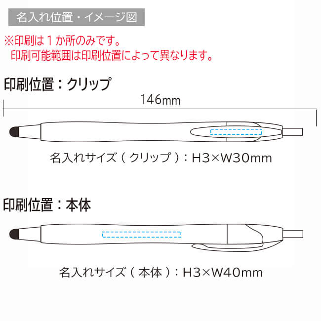 | 本体サイズ | 136mm | 名入れサイズ | ボディH3×W40mm、クリップ:H3×W30mm |
